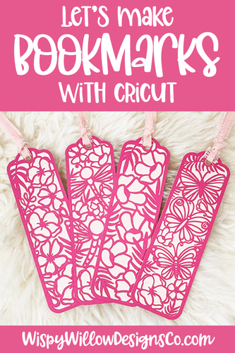 Today we are making a set of 4 spring bookmarks out of cardstock with the Cricut Maker. You will need two colors of cardstock, glue and a pretty ribbon.