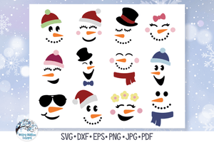 This Winter Snowman Faces SVG Bundle includes 12 individual snowman face files and one file with all of the snowman faces for easy uploading.