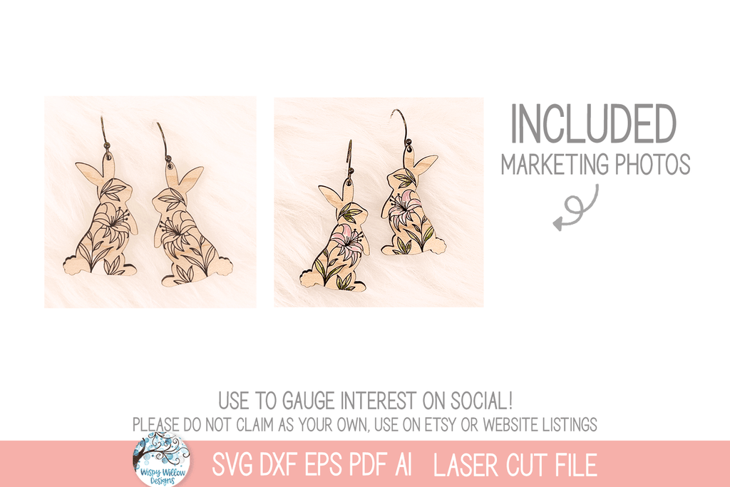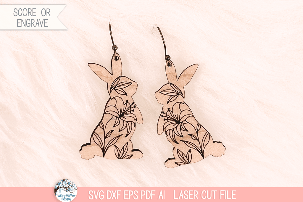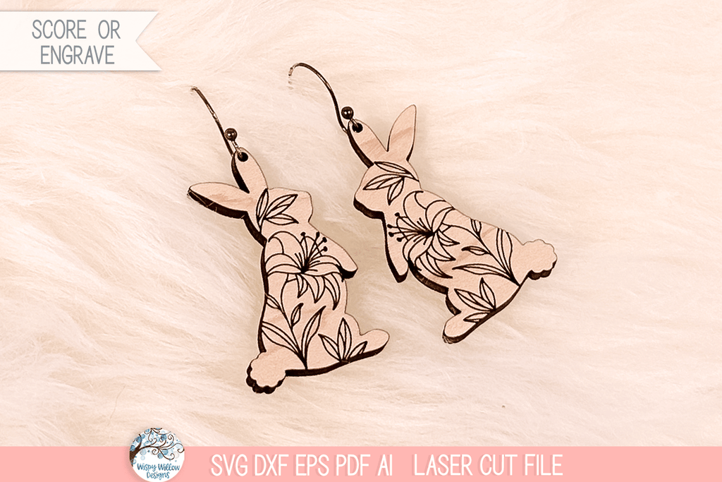 Floral Easter Bunny Earring SVG File for Laser Cutter