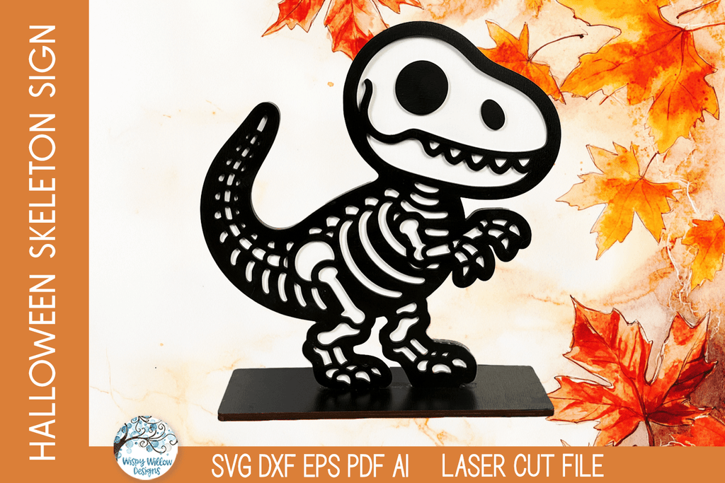 Bring a spooky prehistoric vibe to your Halloween decor with this T Rex Dinosaur Skeleton Shelf Sitter Sign. Crafted as a laser-cut SVG file, it offers precise, detailed design perfect for creating eye-catching decorations. Ideal for adding a unique, eerie touch to shelves, mantels, or party setups, this digital file lets you customize your Halloween display with ease and creativity. Make your seasonal decor roar with prehistoric charm!