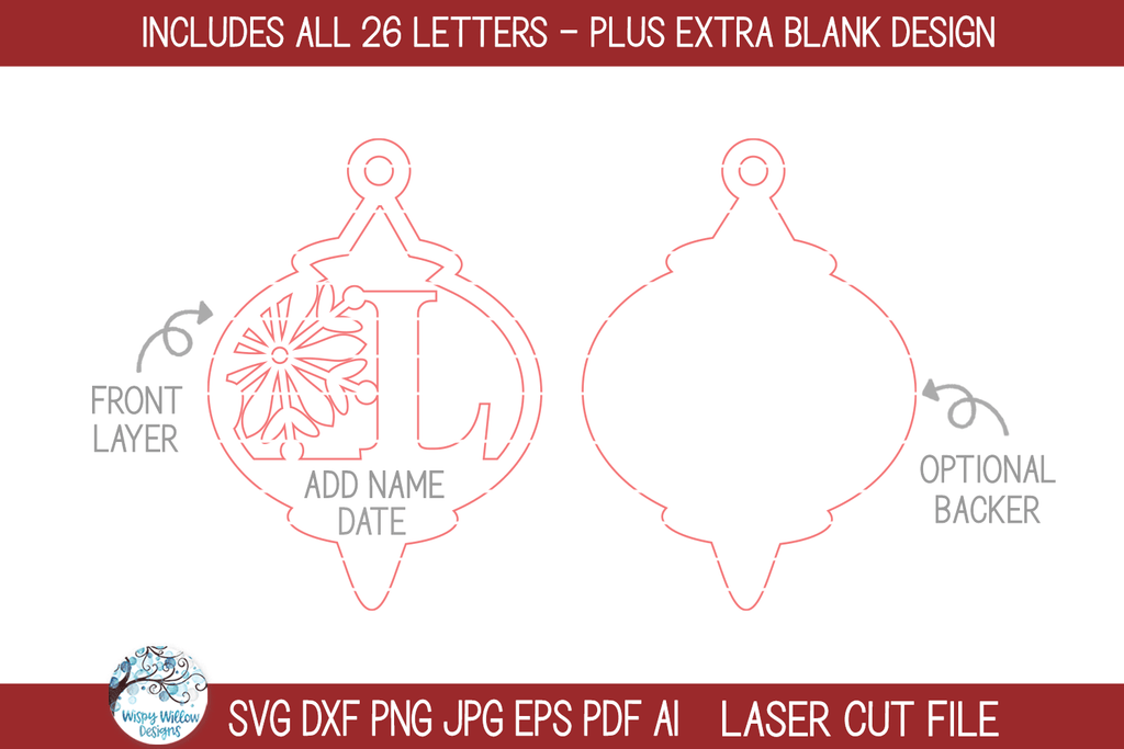 Personalized Monogram Snowflake Christmas Ornament Bundle for Laser Cutter