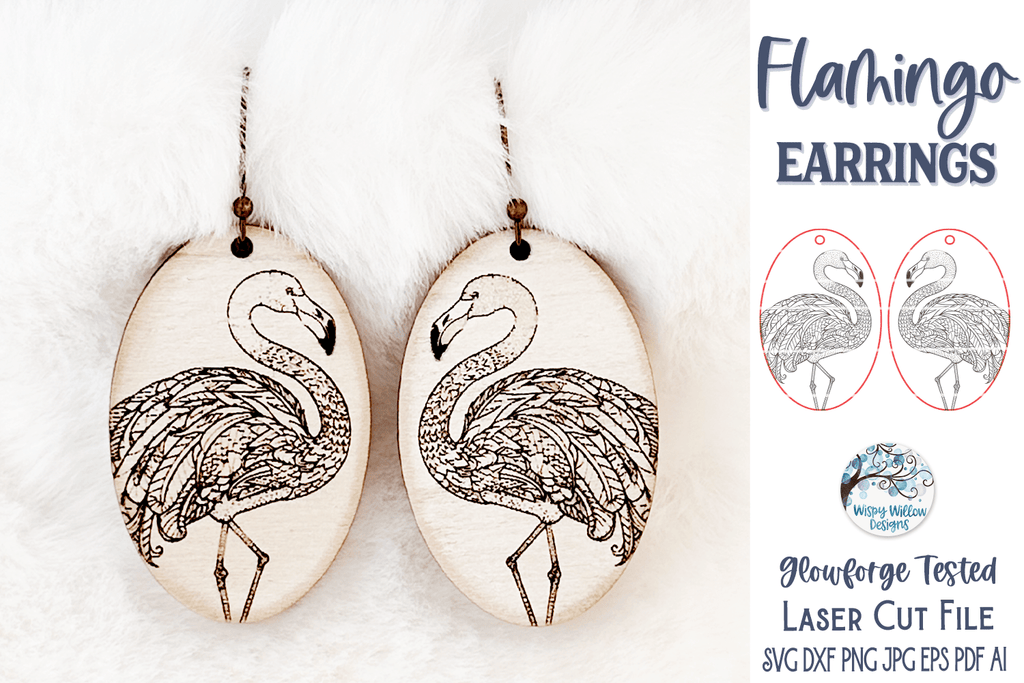 Adorn your summer wardrobe with these beautiful flamingo earrings, designed specifically for Glowforge or laser cutter. With this SVG file download, you'll be able to create stylish, engraved animal wood earrings for a tropical, summer look.