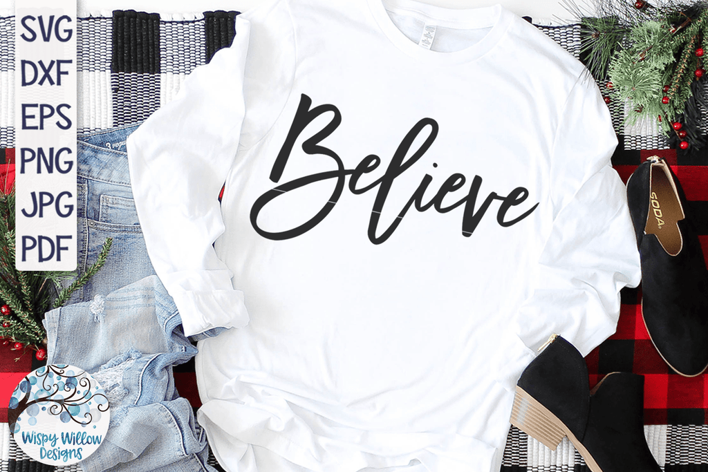 Unlock your creativity with the Believe SVG digital download! Featuring versatile formats like SVG, DXF, and PNG, these cut files are optimized for popular design software. Perfect for crafting unique decals, shirts, and mugs, this package empowers your small business with a commercial license.