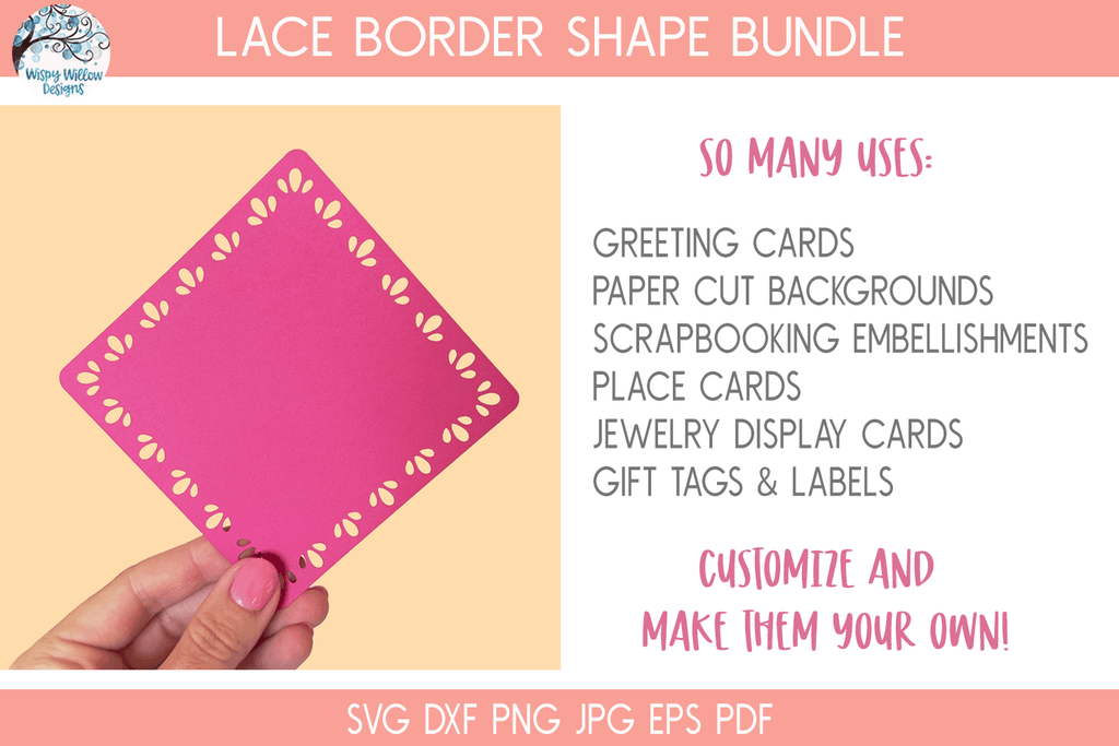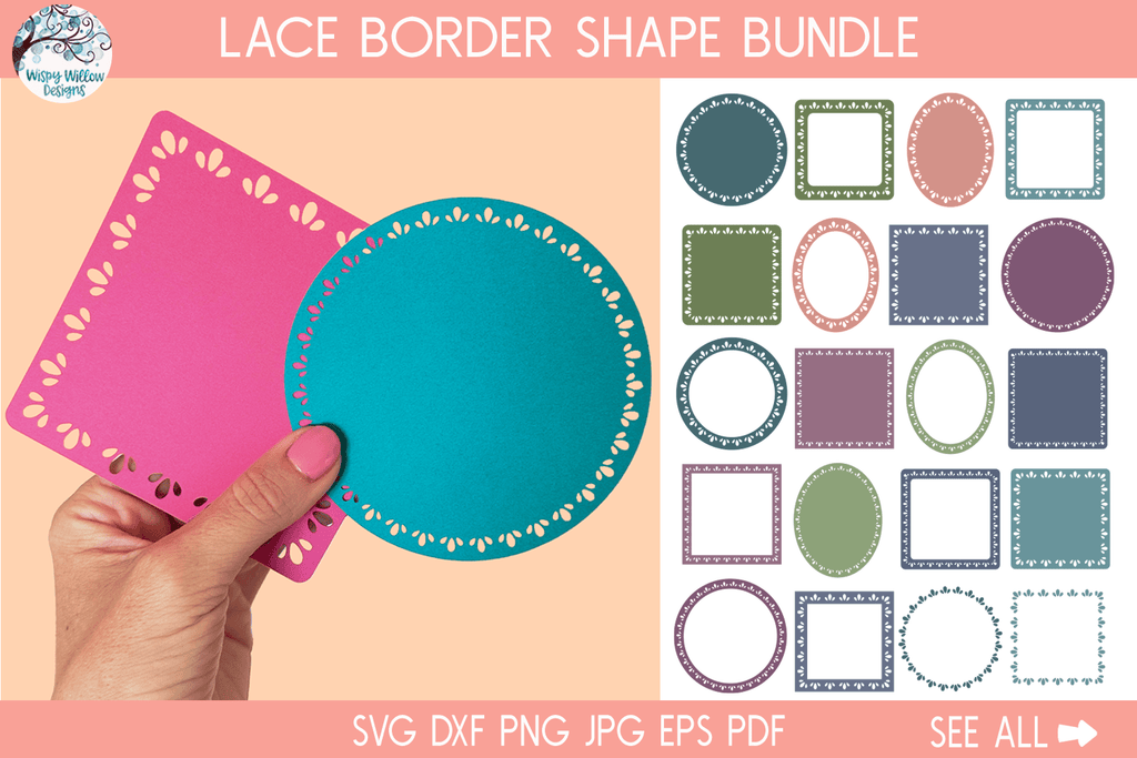 Craft beautiful scrapbook backgrounds with our Lace Edge Shape SVG Bundle. These crafting shapes add a touch of elegance to any project. Perfect for adding a unique edge to your memories.