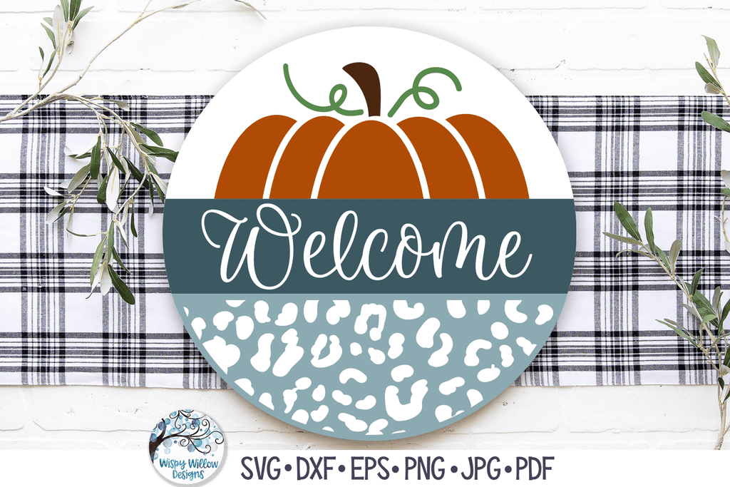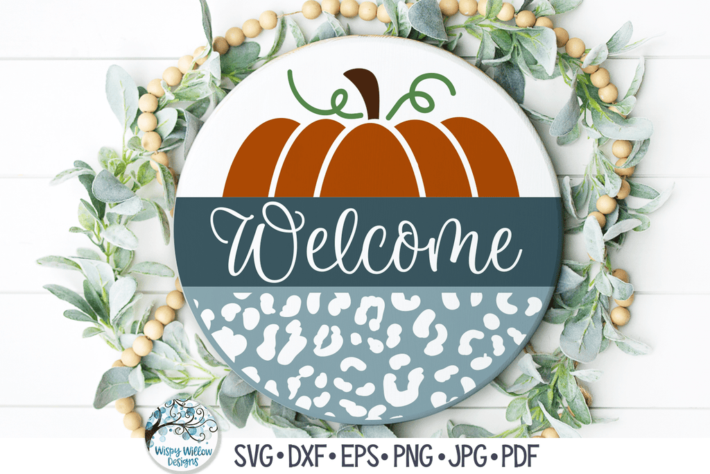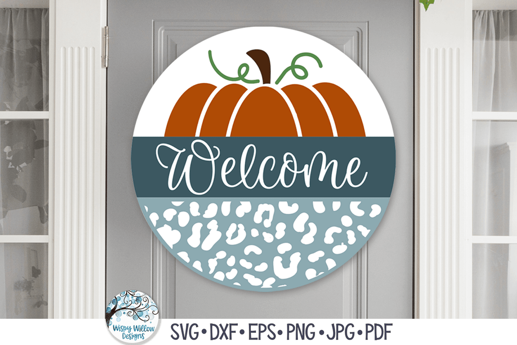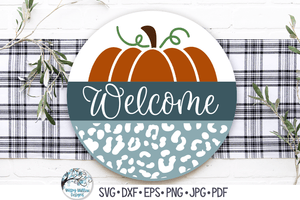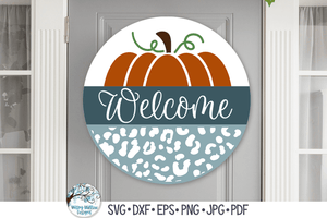 Round Welcome Sign SVG | Pumpkin with Leopard Print for Fall