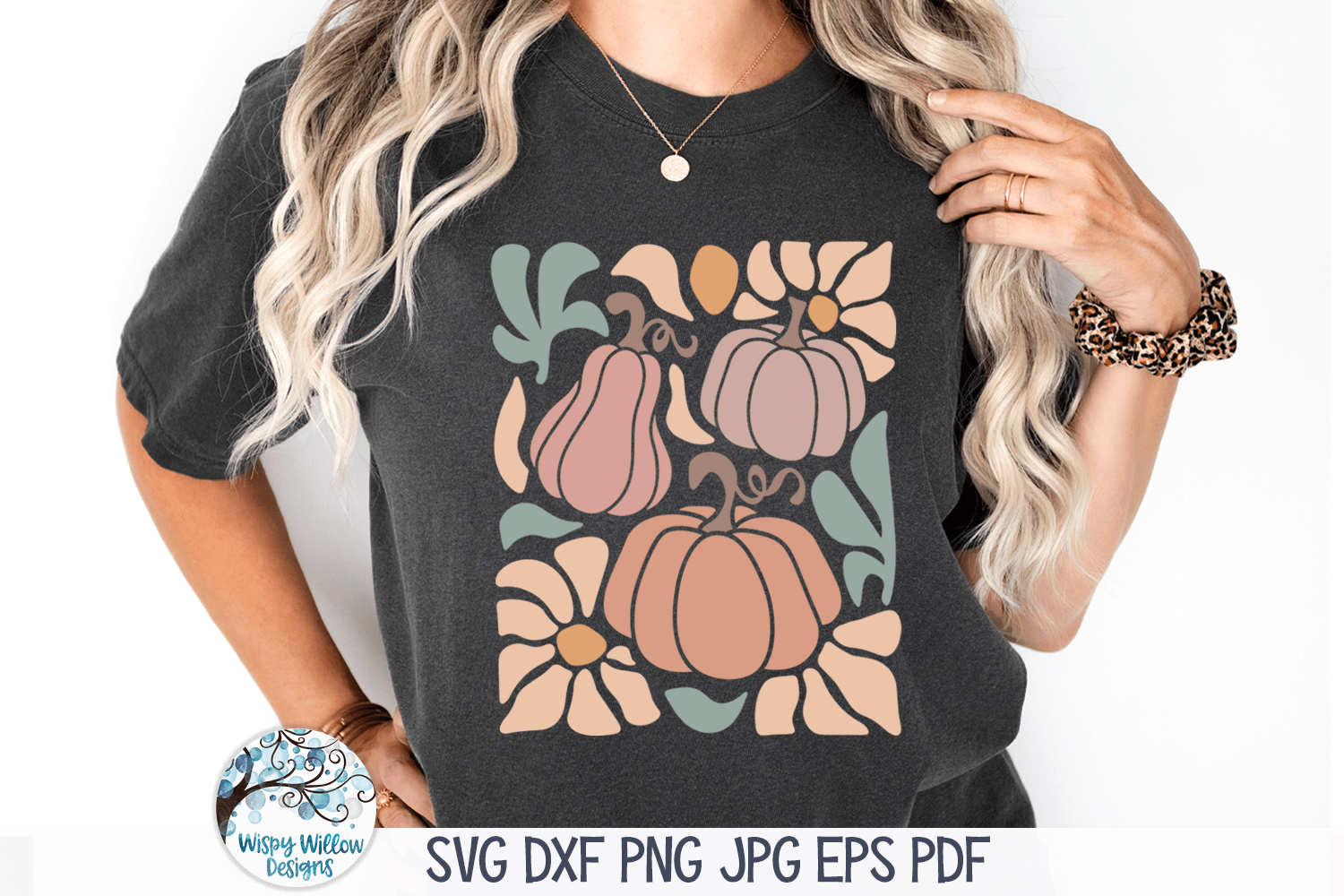 Fall Pumpkins with Flowers SVG | Abstract Retro Art