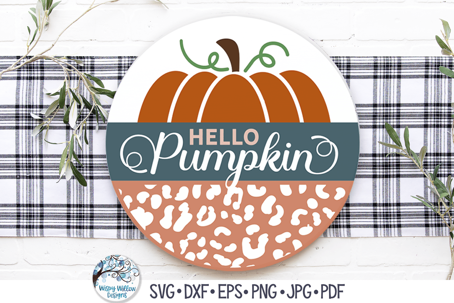 Hello Pumpkin Round SVG | Leopard Print Fall Door Sign