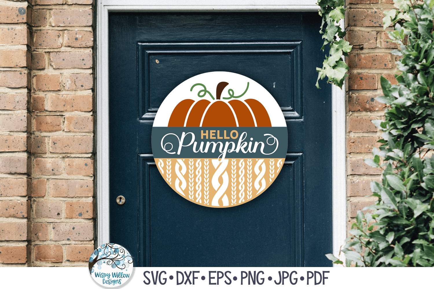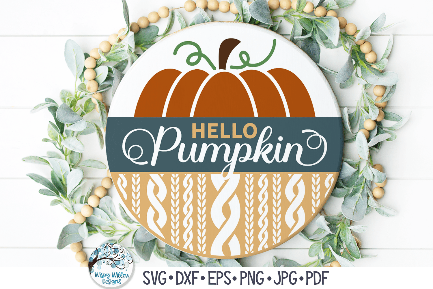 Hello Pumpkin Round SVG | Sweater Print Fall Sign