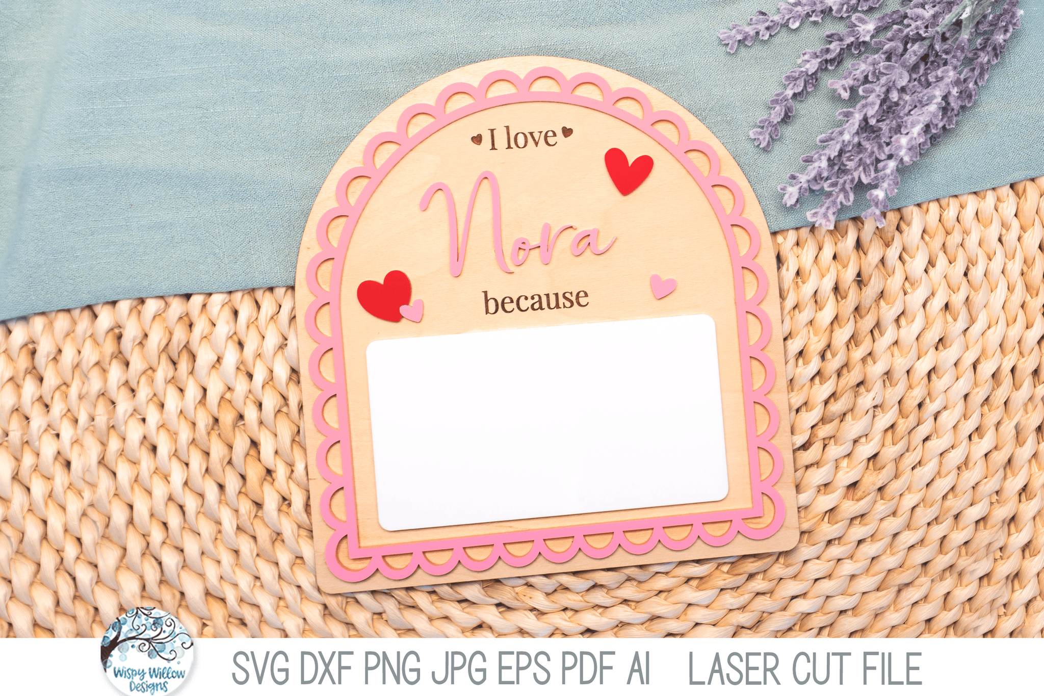 I Love You Because - Valentine's Day Scalloped Arch Sign SVG File for Laser Cutters