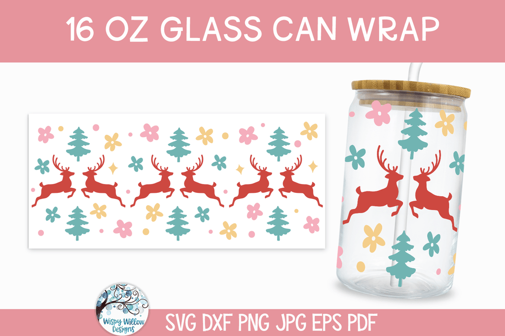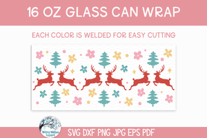 Christmas Reindeer SVG | 16 OZ. Glass Can Wrap