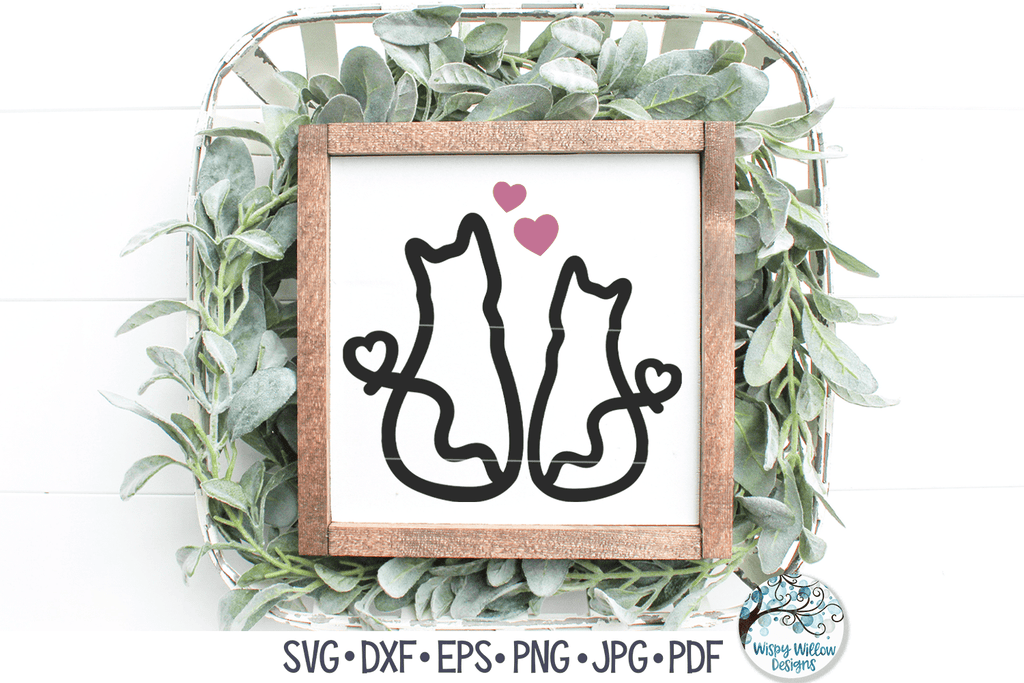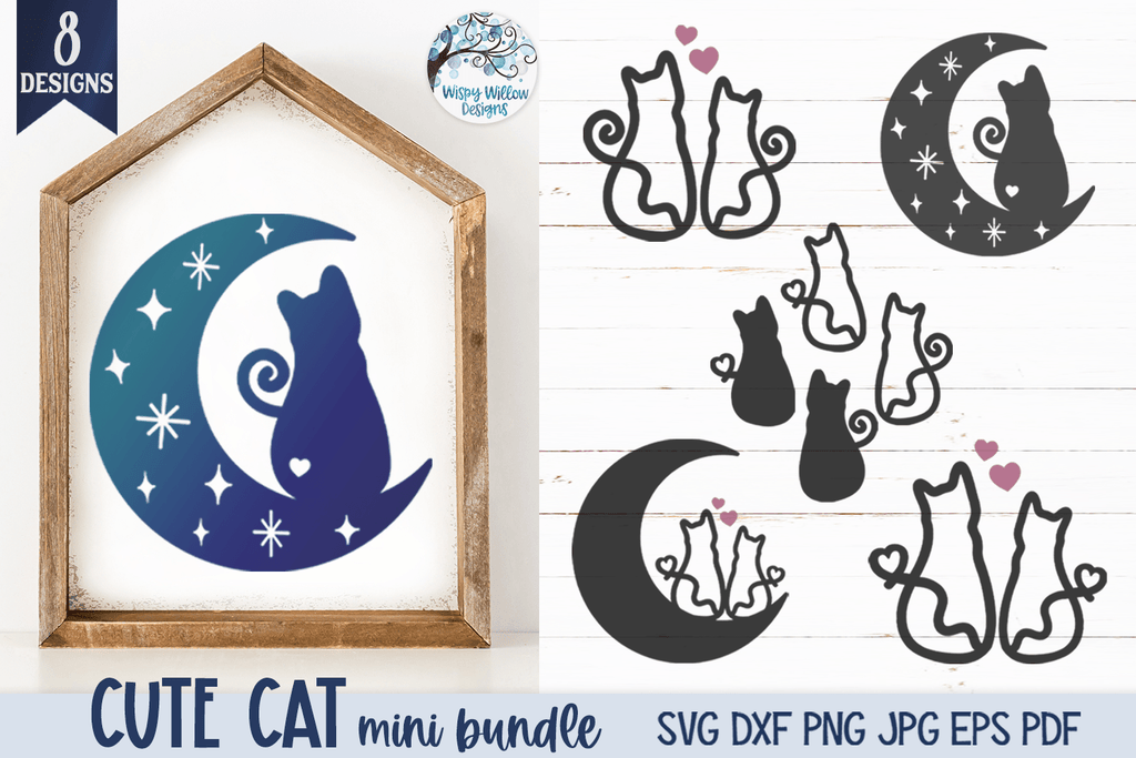This Cute Cat Mini SVG Bundle is perfect for creating cute pet decals, signs, shirts and more. Includes cats with heart shaped tails, swirl tails, cats in love and cats on moons.
