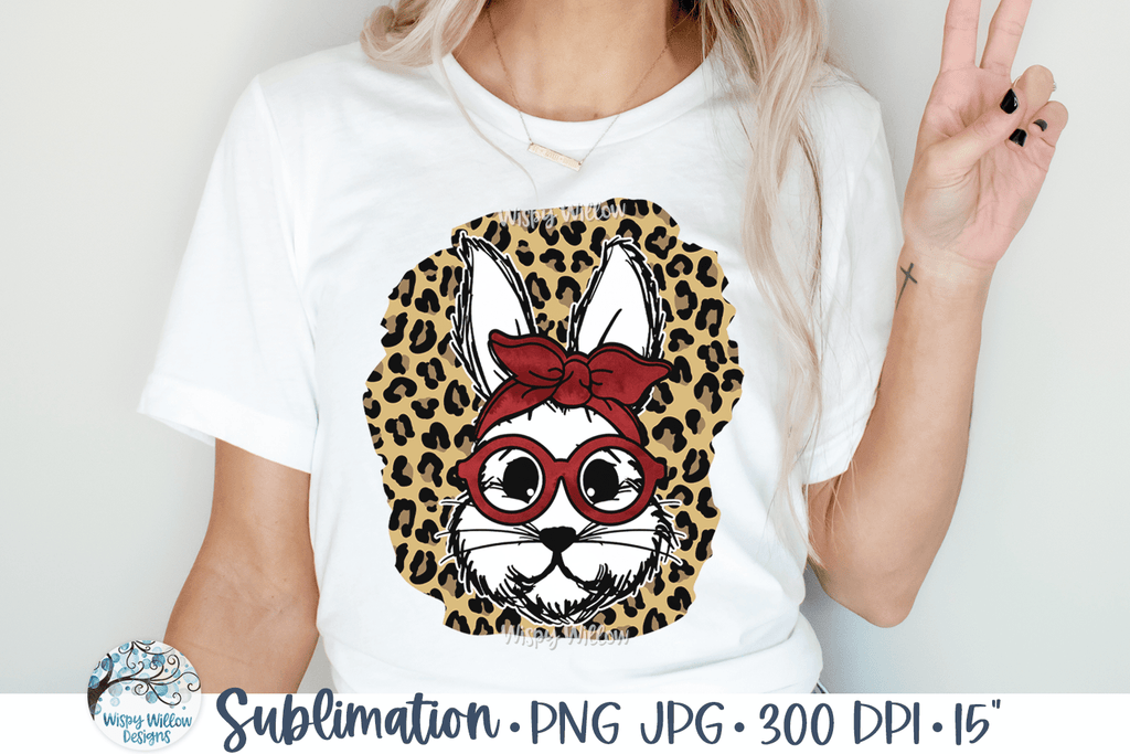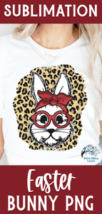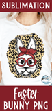 Easter Bunny Glasses, Bandana, Leopard Print Sublimation PNG - This trendy Easter Rabbit face has a red bandana and glasses, surrounded by beautiful leopard print. This design is perfect for women's Easter Shirts, Mugs, Bags and more.