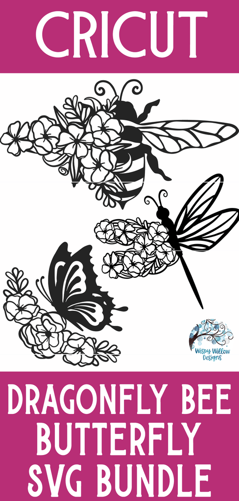 This Floral Bee Butterfly and Dragonfly SVG Bundle includes 14 fun floral designs that are perfect for spring and summer!
