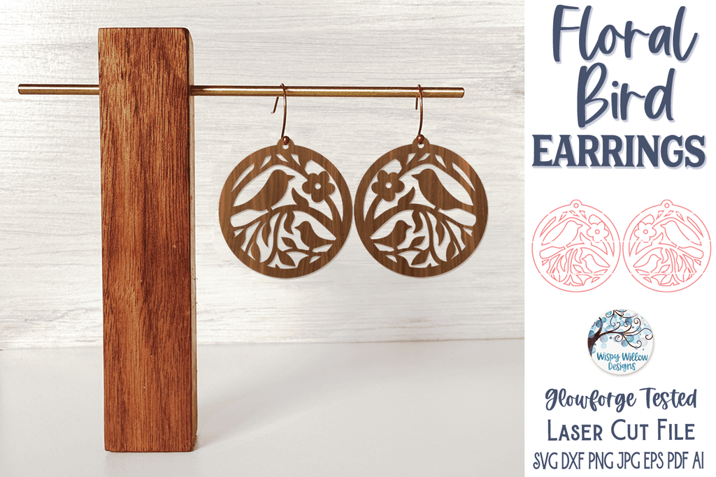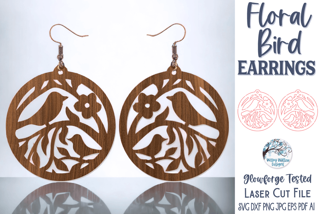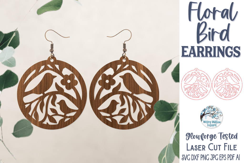 Step out in style with these unique floral bird earrings, designed for use with a Glowforge or Laser Cutter. These dainty and stylish accessories will be the perfect addition to any outfit, and will not go unnoticed. Stand out from the crowd with these one of a kind earrings!