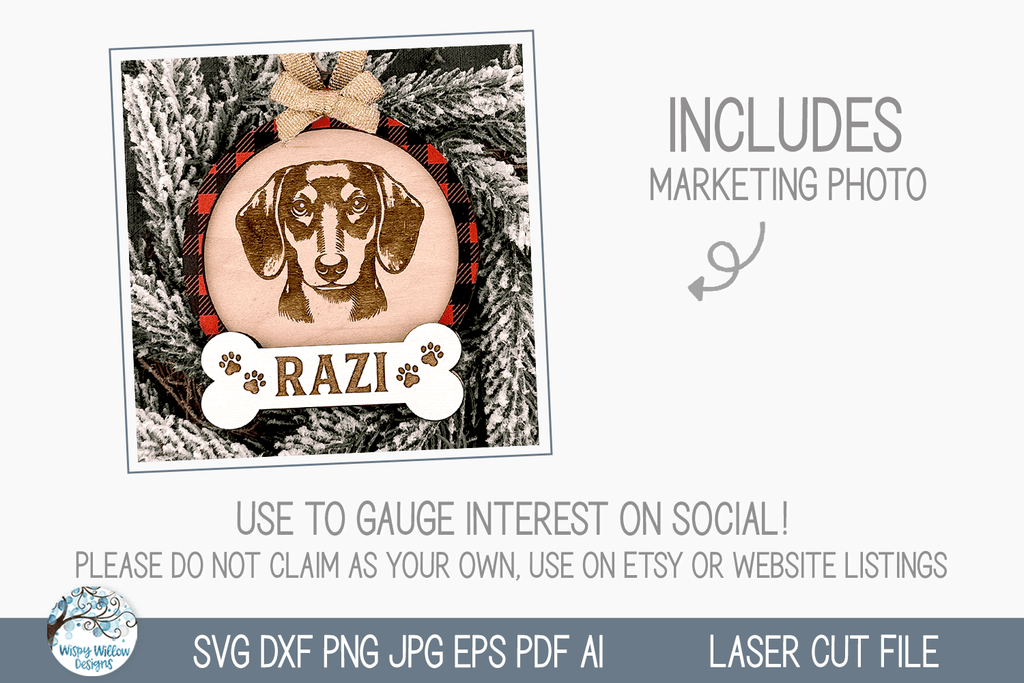 Celebrate the holidays with a unique Dachshund Christmas Ornament! Perfect for Glowforge or laser cutters, this instant download includes multiple file formats (SVG, DXF, PNG, JPG, EPS, PDF, AI). Create custom ornaments at your preferred size, and enjoy a small business license for selling handmade items!