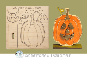 Halloween Jack O Lantern Pumpkin DIY Pop Out Stand Up Craft Coloring Kit - SVG File for Laser Cutter