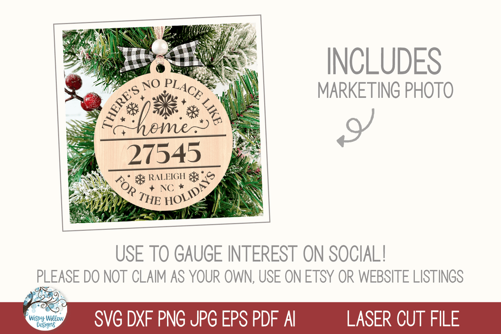 Celebrate the holiday spirit with our unique No Place Like Home Zipcode Christmas Ornament. Perfectly sized at approximately 3.3" x 3", this downloadable design is compatible with Glowforge Laser Cutters, allowing for creative customization.