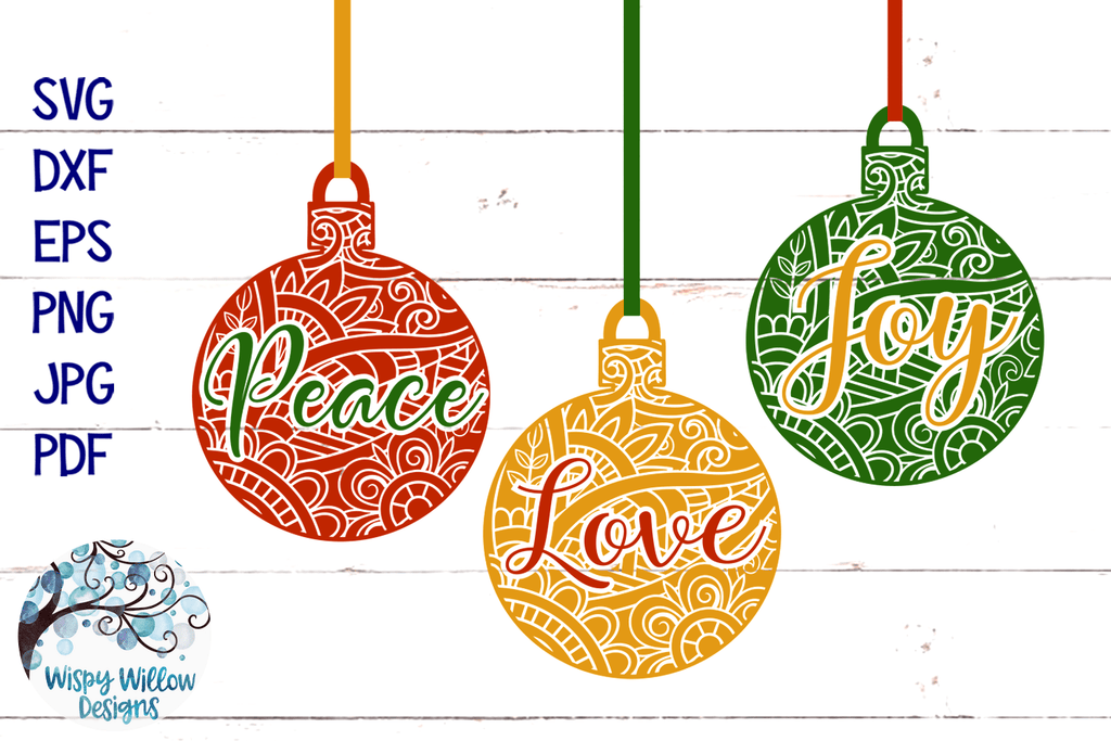 Unleash your creativity with our Peace Love Joy Christmas Ornament Mandala SVG. This versatile digital bundle includes SVG, DXF, PNG, JPG, EPS, and PDF formats, perfect for crafting unique decorations and gifts using popular software like Cricut and Silhouette.