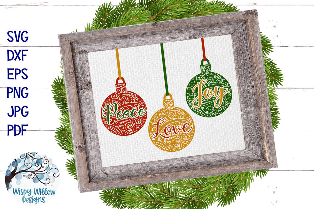 Peace Love Joy Christmas Ornament Mandala SVG