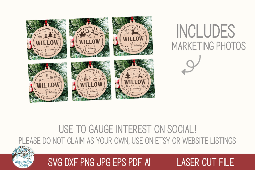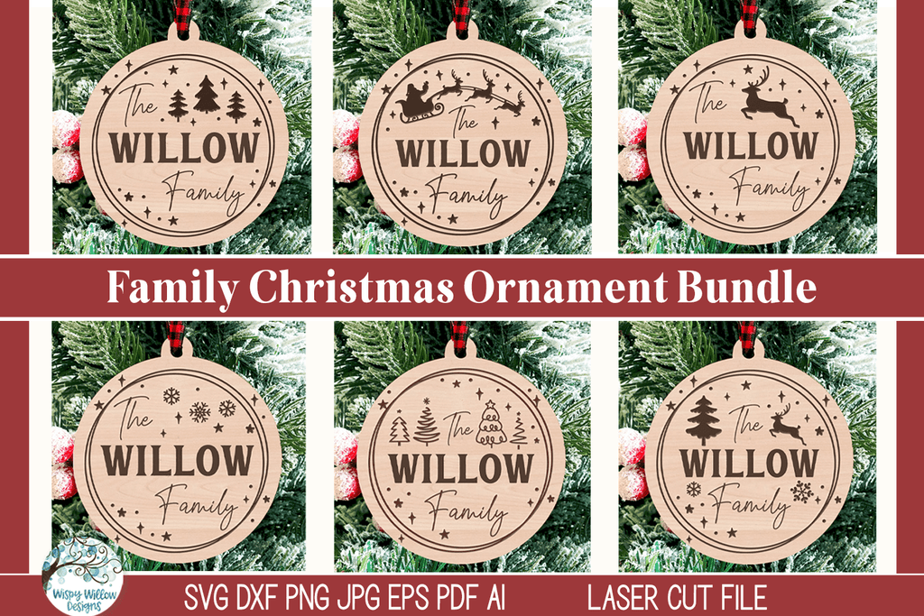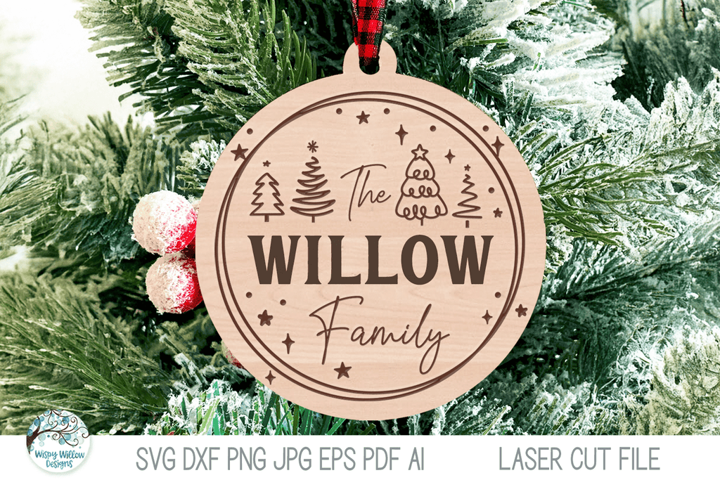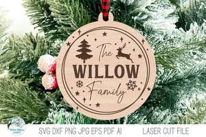 Create cherished holiday memories with our Personalized Family Christmas Ornament Bundle. This digital download features versatile file formats (SVG, DXF, PNG, JPG, EPS, PDF, AI) tailored for Glowforge and xTool laser cutters, allowing customization to your size preference.