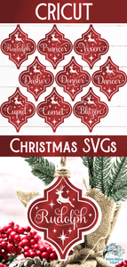 Transform your creative projects with our Reindeer Names Arabesque Ornaments SVG! These intricate designs are perfectly sized for effortless cutting.