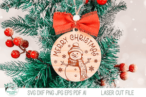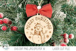 Snowman Merry Christmas Ornament SVG File for Laser Cutter