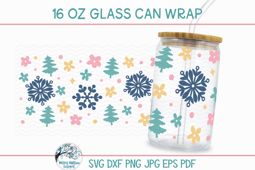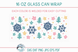 Winter Snowflake Cup Template SVG | 16 OZ. Glass Can Wrap
