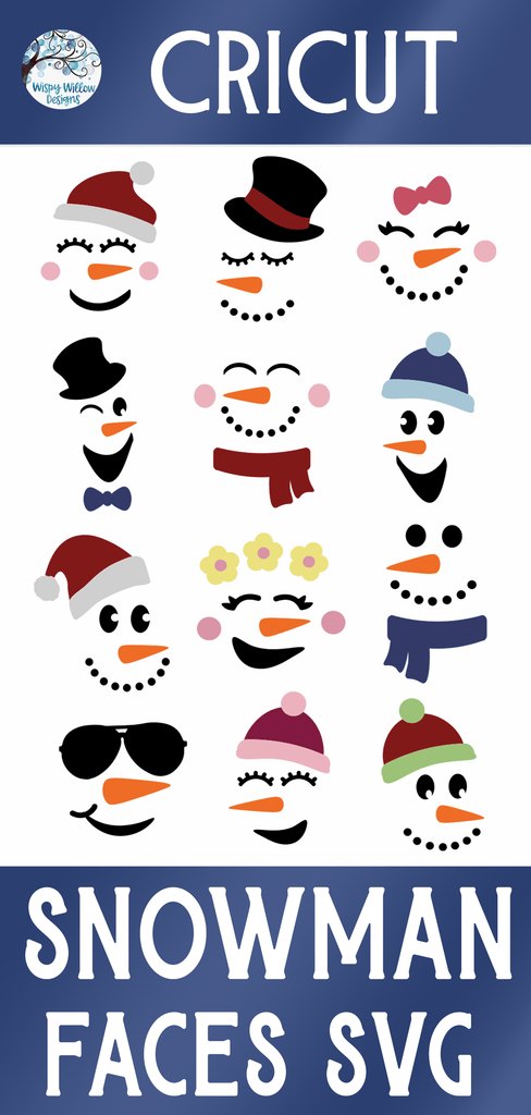 This Winter Snowman Faces SVG Bundle includes 12 individual snowman face files and one file with all of the snowman faces for easy uploading.