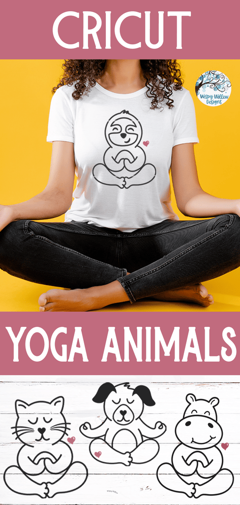 These cute Yoga Animal SVGs will inspire you to find your inner peace. These files are optimized to cut and weed easily. Includes Yoga Sloth, Fox, Dog, Raccoon, Bear, Cat, Koala, Panda, Hippo, each in two different yoga poses!